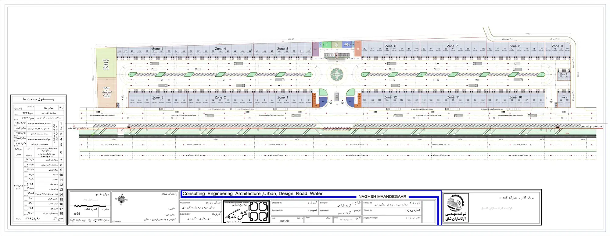 در فاز نخست پروژه، مطالعات اولیه شامل تحلیل نیازهای کاربران، بررسی استانداردهای محیطی، طراحی مسیرهای دسترسی و نقشهبرداری دقیق از محل انجام شد. این مرحله باعث شد تا همه بخشهای میدان بهینه و کارآمد طراحی شود و از بروز مشکلات احتمالی در مراحل بعدی ساخت جلوگیری گردد. بر اساس این مطالعات، تصمیم گرفته شد فضا به گونهای طراحی شود که جریان رفت و آمد خریداران و فروشندگان به شکل منطقی و ایمن انجام گیرد و هر غرفه بتواند بیشترین بهرهوری را داشته باشد.